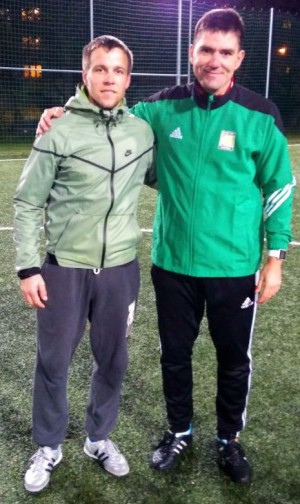 Na fotografii so Scottom Wrightom - trénerom mládeže vo futbalovej akadémii klubu Premier League - Stoke City a Richardom Feketem - športovým komentátorom televízie Digi Sport.